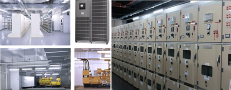 机房区域 『电力系统』 冗余(N+1)或(N+N)基础电力供应设备,不间断电源(UPS):2 x (N) 系统可选,并配备静态切换开关,一期运营阶段供电容量为2,8000 kVA (可增容至31500KVA ),一期运营阶段发电机功能电容为2,4000 kVA (可增容至2,8000 kVA ),客户设备机架功率可高达12kVA,独立接地连接 l电力保障及服务承诺,机柜保证电力持续供应100%。 14台美国卡特CAT彼勒3516系列高压柴油发电机组。单机组10KV额定电 压,2000KW全功率输出,全系统28000KW整功率输出。全电子控制柴油机(电喷),排放可到到欧Ⅳ和美国EPA-3B。卡特彼勒发动机独有的 ACERT技术,是世界上唯一不使用废气再循环技术而达到最高环保标准的发动机,也是世界上最清洁的发动机。卡特彼勒发电机组功率充足,可100%功率输 出。全系统智能控制,启动成功率达到99.492%,应急响应介入式时间钟管理,保证100%电力保障。